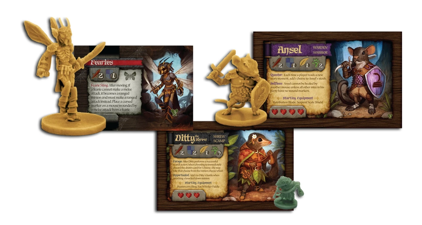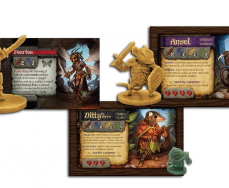 Mice and Mystics: Downwood Tales is a box chock full of adventure and whimsy. New storybook, a pile of new miniatures, new heroes, new villains, new location tiles, new search deck items. Downwood Tales takes the adventure outdoors. Meet frogs, turtles, rabbits, the wise sages - the three blind mice, ride leaves like parachutes out of the trees and much, much, much more.