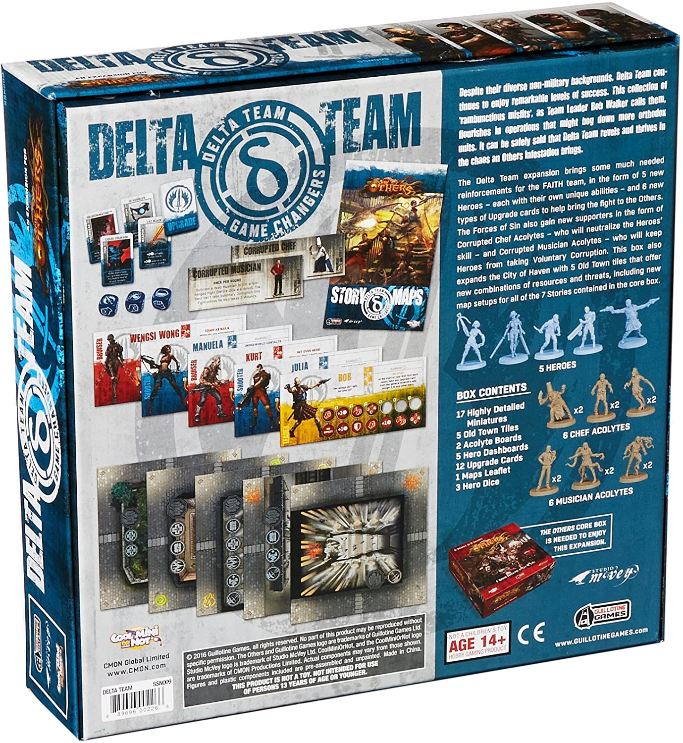 Delta Team brings another 12 Upgrade cards to add into your inventory deck, giving your heroes new options to face the Others. There are 6 different cards, with 2 copies each, featuring equipment such as Wengsi Wong's amazing Laz Blades which crave for the bigger baddies, IR Goggles that are perfect to make sure your Ranged attacks hit their target, and some disposable Liquid Courage that can heal all your wounds.