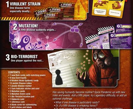 Pandemic: On the Brink includes new event cards, new role cards, rules for five players, and optional game challenges to increase the difficulty of the Pandemic base game. These new challenges, which can be used individually or combined for even more difficult play, are as follows: