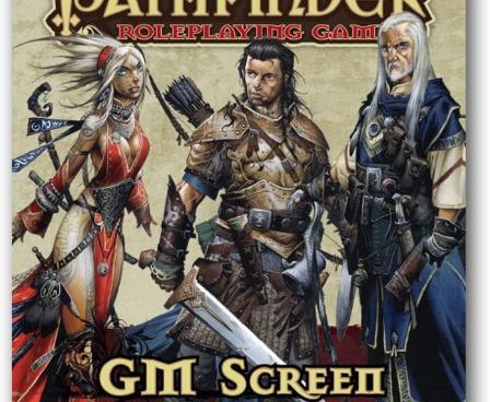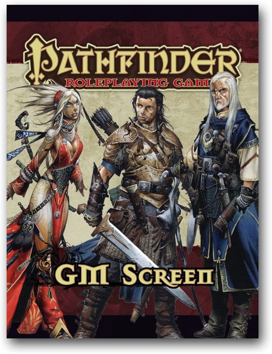 Protect your important notes and die rolls from prying player eyes with the Pathfinder Roleplaying Game GM Screen! This beautiful 4-panel screen features stunning artwork from Wayne Reynolds on the player's side, and a huge number of charts and tables on the GM side to speed up play and reduce time spent leafing through rulebooks in search of an obscure modifier or result. From skill check Difficulty Classes to two-weapon fighting modifiers, the Pathfinder Roleplaying Game GM Screen gives you the tools you need to keep the game fast and fun. Constructed of ultra-high-grade hardcover book stock, this durable screen is perfect for travel, convention play, or repeated regular use.