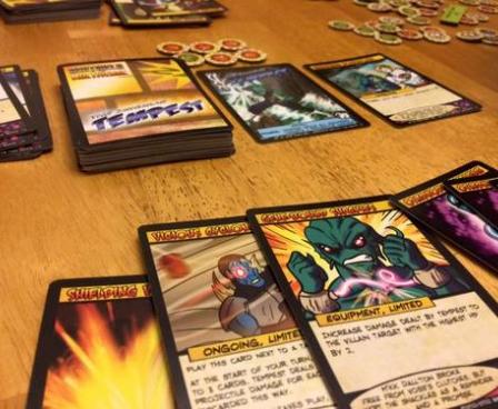 Sentinels of the Multiverse is a cooperative, fixed-deck card game with a comic book flavor. Each player plays as one of ten heroes, against one of four villains, and the battle takes place in one of four different dynamic environments.