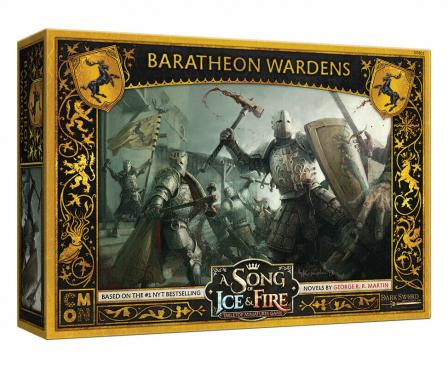 The Baratheon Wardens unit box for the A Song of Ice and Fire: Tabletop Miniatures Game gives House Baratheon commanders a tough, resilient set of troops for their forces. Clad in plate mail and carrying heavy shields, they have a good Defense Save stat, though all of that does slow them down. Their heavy warhammer attacks can crush the enemy’s spirit as much as it can crush their bones. Defending against these pounding attacks can leave enemy troops gasping for air as the strength is sucked from them.
