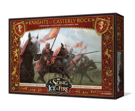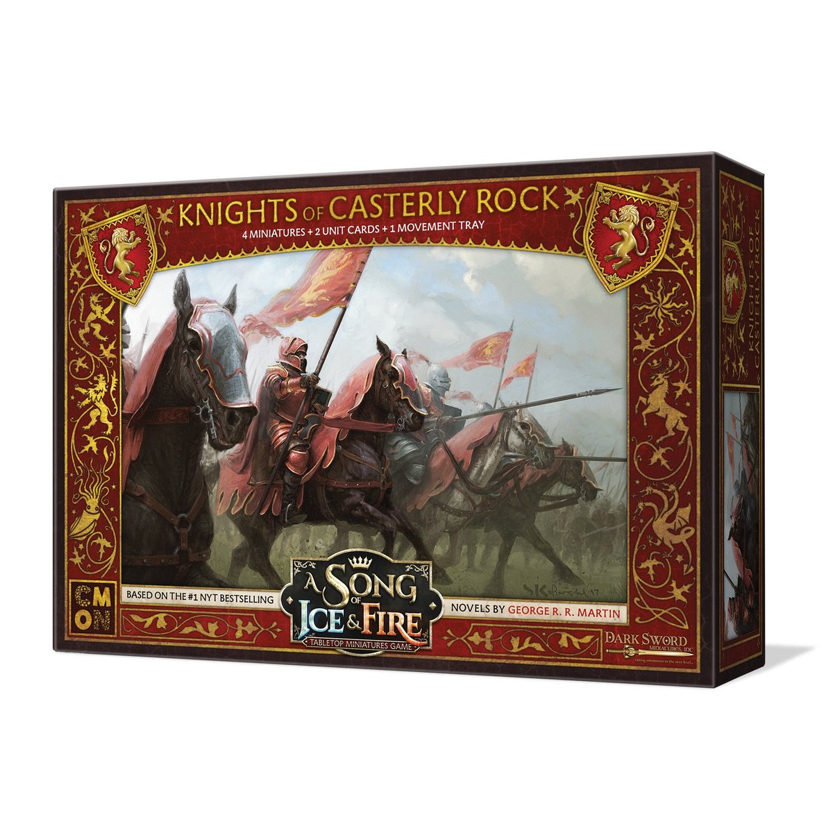 The Lannister Knights of Casterly Rock Unit Box for the A Song of Ice and Fire: Tabletop Miniatures Game brings a fast, hard-hitting, and durable unit to the battlefield. Being cavalry, they get an extra movement at the start of their activation. They are also deadly on the Charge, with their weapons gaining Critical Blow and Sundering. Enemies will quickly become disheartened fighting them, being forced to make Panic Tests whenever the Knights survive a round of combat.