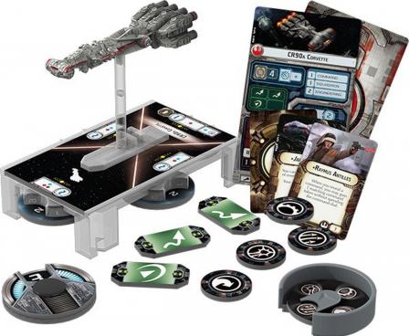 You can add one of these versatile starships to your Rebel fleet with the CR90 Corellian Corvette Expansion Pack. The expansion comes with one pre-painted miniature CR90 corvette, one command dial, all requisite tokens, and ship cards for both the CR90a and CR90b configurations. Additionally, eight upgrades allow you to equip your corvette for battle, including the commander card, Mon Mothma, and the Tantive IV title card.