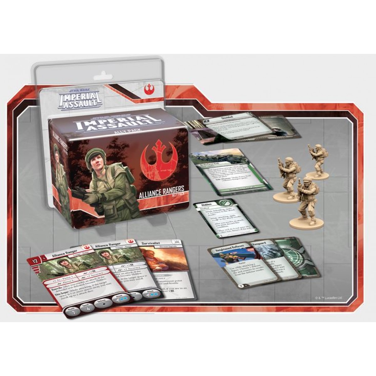 Alliance Rangers may help a small team of Rebel heroes survive among the dunes of Tatooine, or they may battle Imperial Stormtroopers under the canopy of a mighty forest, but wherever they’re deployed, these warriors are among the most deadly long-range fighters in the game of Imperial Assault. This Ally Pack comes with plenty of other ways to alter your campaign missions or skirmish games as well. You may travel to the planet Ithor to silence an Imperial recon facility, or move deep into the Nal Hutta Swamps and silently battle another strike team in the backwaters of the Hutt homeworld. No matter which way you prefer to play, the Alliance Rangers are a powerful asset for the Alliance to Restore the Republic.