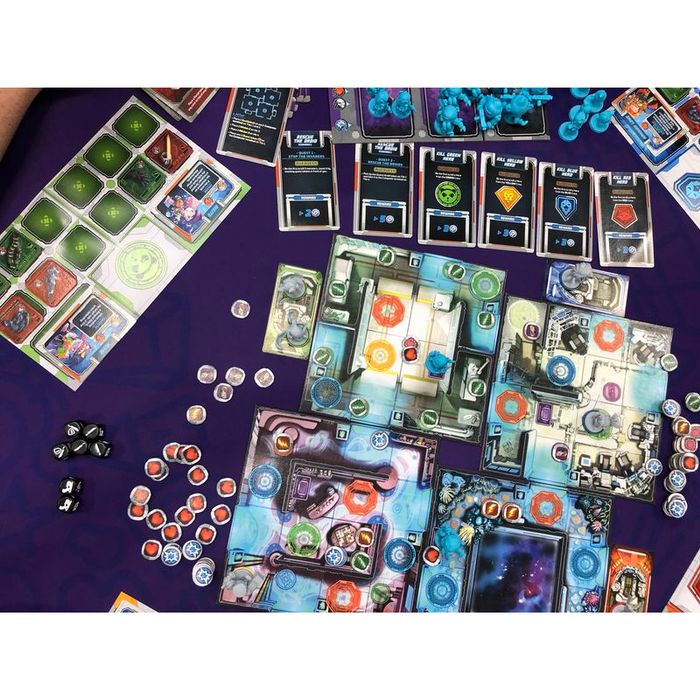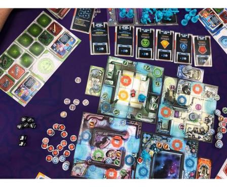 Starcadia Quest is a new standalone campaign game for 2 to 4 players. The dastardly Supreme Commander Thorne is looking to control the galaxy (at least a good portion of it) and each player leads a crew of two heroes flying through space on a quest to defeat him. While they share the same goal, the different crews are not exactly in league with one another. They will compete as much with each other as they do with Thorne and his army.