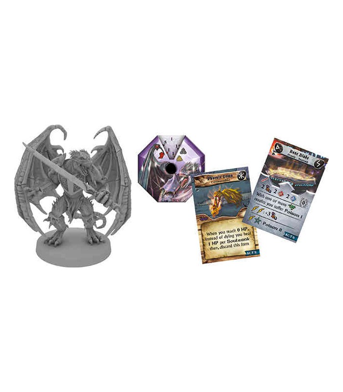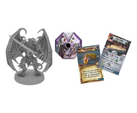 This Hero Pack features two miniatures of Volkor (normal and Ghost Soul form), his Soul Gem, and new cards — including two legendary treasures, the deadly Bone Blade and the life–saving Phoenix Down.