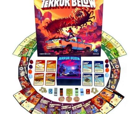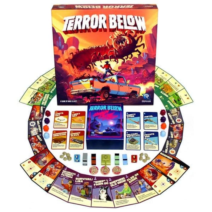 The goal of Terror Below is to be the first player to score 20 victory points (VP) by collecting worm eggs and delivering them to locations around town — or alternatively, by hunting down and killing those vicious worms.
