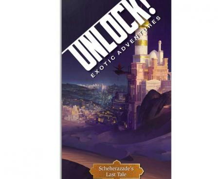 Scheherazade's Last Tale is an Unlock! adventure for up to six players. With just one hour on the clock, players must work through a deck of sixty cards as a team, searching for clues, combining objects, and figuring out puzzles to solve the mystery and escape the countdown timer. The free Unlock! app runs the timer while providing clues, giving hints, and helping players succeed. Once the team has reached the solution and entered the correct code, they've escaped, and the game has been won!