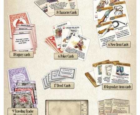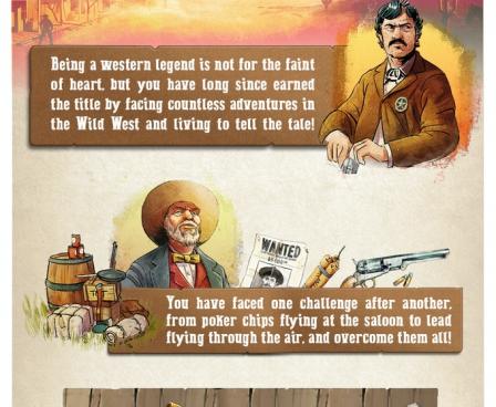 Blood Money is the second large expansion for Western Legends, introducing a number of modules to tailor every game. The risk module uses a die that improves a number of actions... at the risk of injury. The legendary story module incorporates the story track and high-reward adventures for players to pursue. Players may now purchase deeds to locations and legendary items from the traveling trader. And of course, there is a bevy of new characters and items to explore!