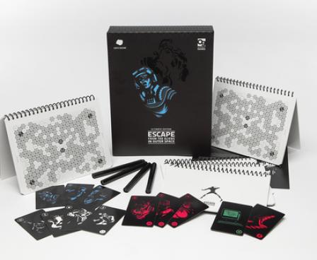 Escape from the Aliens in Outer Space is a card game of strategy and bluff set on a badly damaged deep space research ship. On-board systems have failed, plunging the ship into darkness. But even worse: A mysterious alien plague has crept aboard and is transforming the human crew into horrendous monsters! The remaining crewmen desperately try to save their lives by escaping from the derelict spaceship, but in the darkness the aliens are lurking...hungry for human flesh.